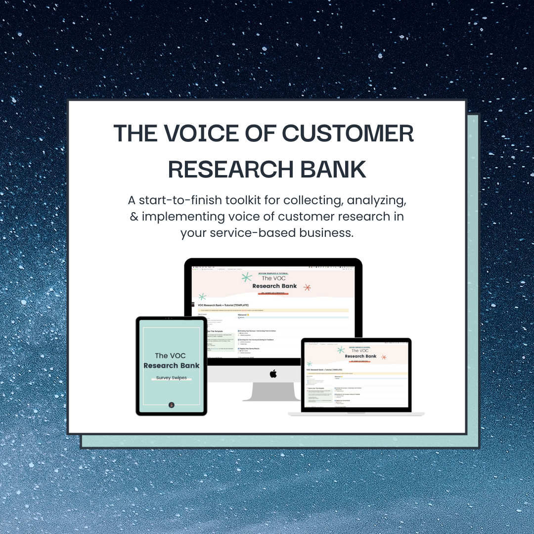 A start-to-finish toolkit for collecting, analyzing, & implementing voice of customer research in your service-based business.