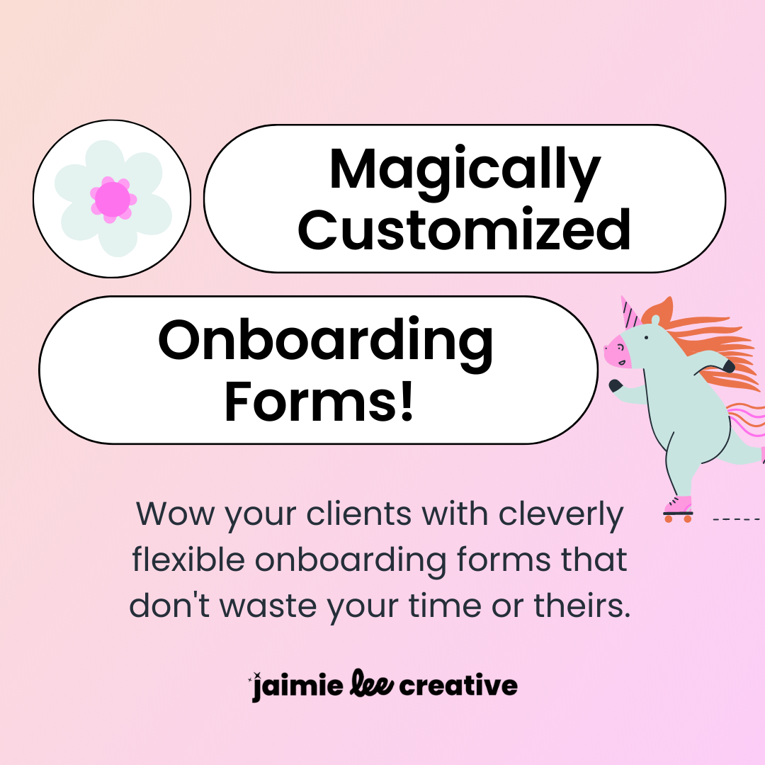 WHAT IT IS: Magically Customized Onboarding Forms 🦄 is the quick & simple training to help you wow your clients with cleverly flexible onboarding forms that don't waste your time or theirs.